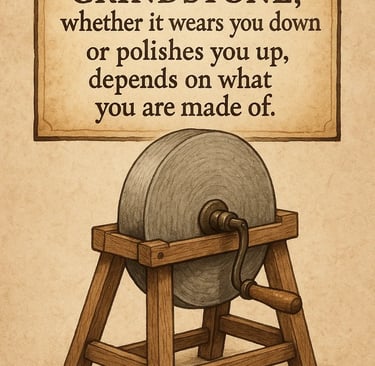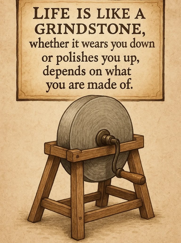 Life is like a Grindstone, whether it wears you down or plishes you up, depends on what you are made of.